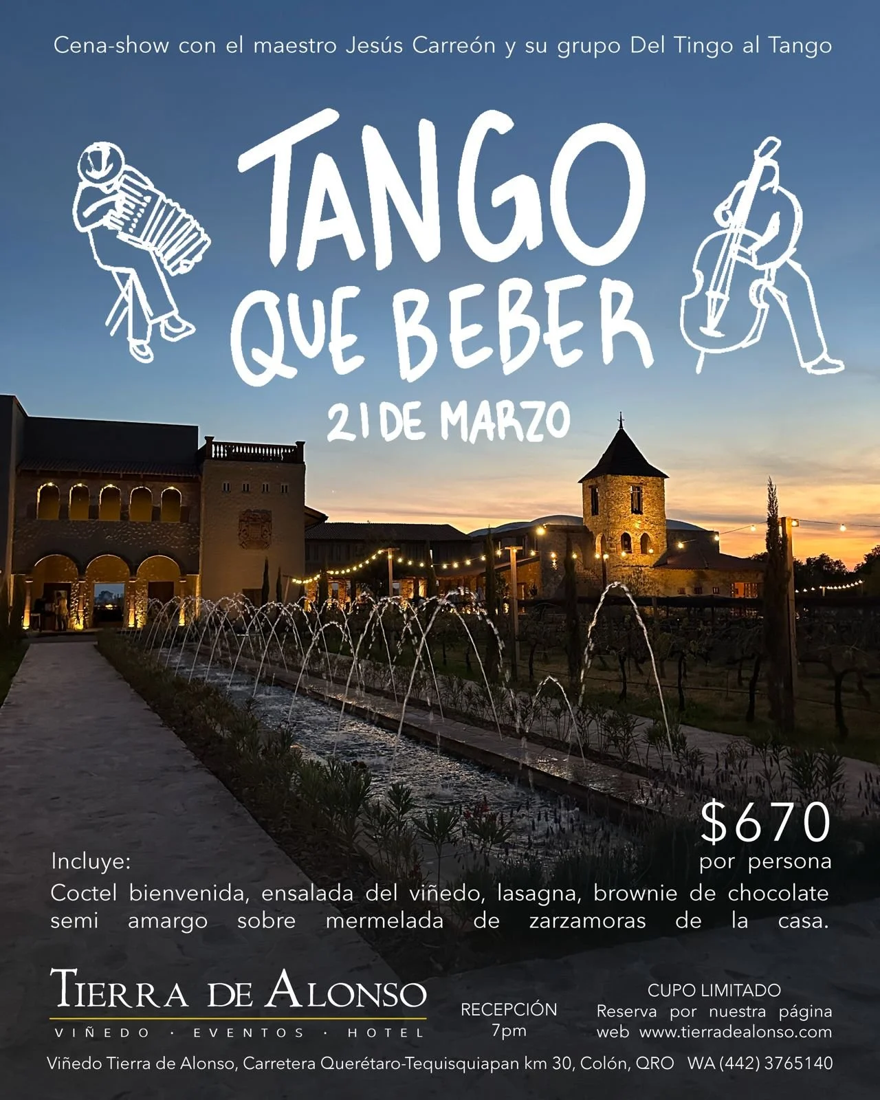 🎶 Show en vivo con el maestro Jesús Carreón y su grupo Del Tingo al Tango 🥂 Coctel de bienvenida